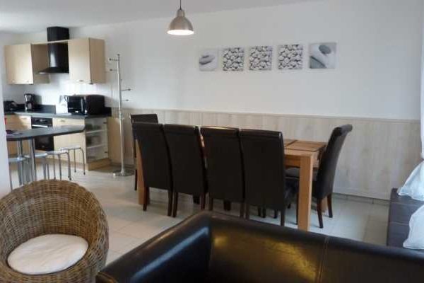 Cuisine équipée avec lave-vaisselle, lave-linge et fer à repasser, WC, Salle à manger, salon avec TV/TNT et lecteur DVD/CD